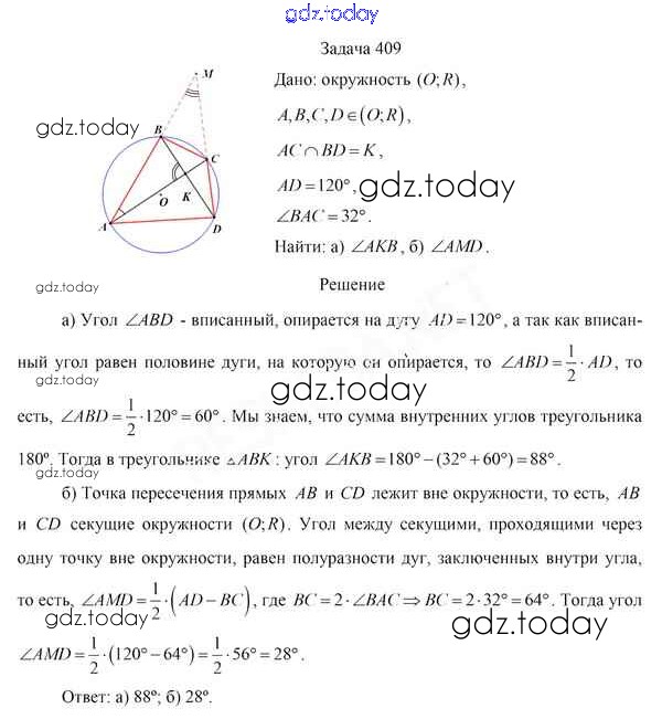 На страницах сайта gdz.today вы найдете учебный и вспомогательный материал, направленный на улучшения знаний школьной программы. ГДЗ - онлайн мир знаний Задачи (решение) 409 Учебнику по Геометрии для 8 класса Казаков Народная асвета 2018