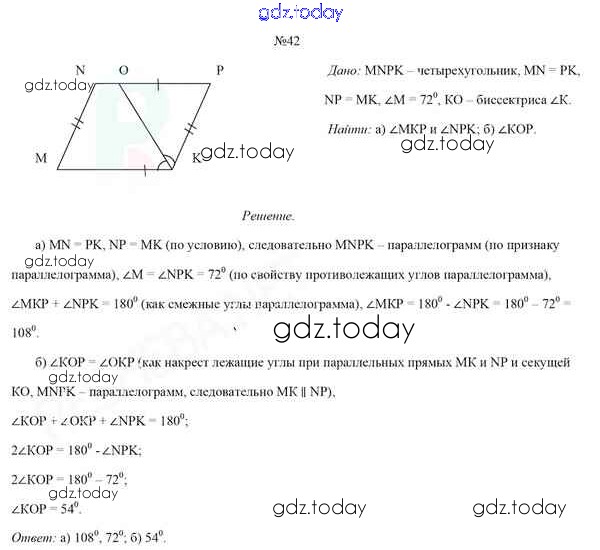 На страницах сайта gdz.today вы найдете учебный и вспомогательный материал, направленный на улучшения знаний школьной программы. ГДЗ - онлайн мир знаний Задачи (решение) 42 Учебнику по Геометрии для 8 класса Казаков Народная асвета 2018