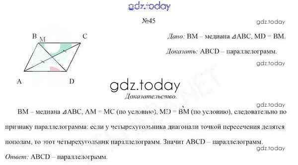 На страницах сайта gdz.today вы найдете учебный и вспомогательный материал, направленный на улучшения знаний школьной программы. ГДЗ - онлайн мир знаний Задачи (решение) 45 Учебнику по Геометрии для 8 класса Казаков Народная асвета 2018