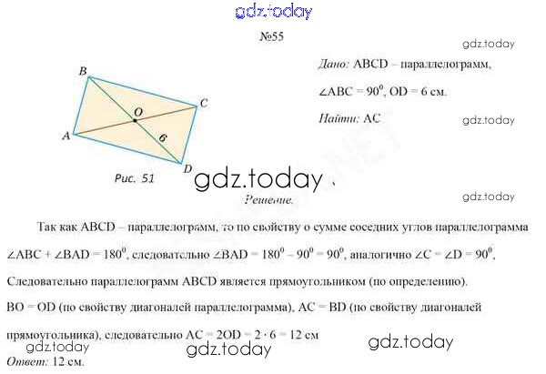 На страницах сайта gdz.today вы найдете учебный и вспомогательный материал, направленный на улучшения знаний школьной программы. ГДЗ - онлайн мир знаний Задачи (решение) 55 Учебнику по Геометрии для 8 класса Казаков Народная асвета 2018