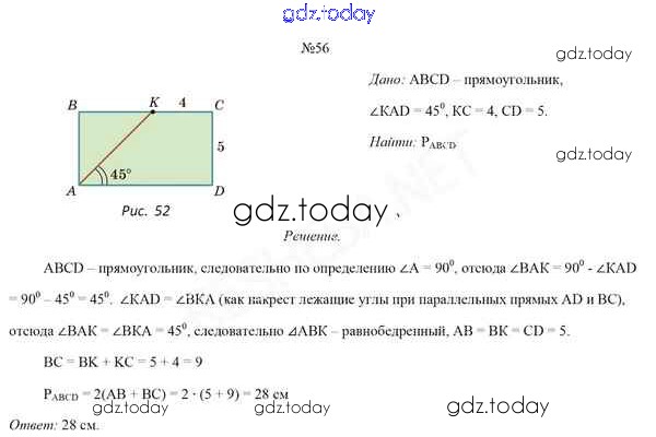 На страницах сайта gdz.today вы найдете учебный и вспомогательный материал, направленный на улучшения знаний школьной программы. ГДЗ - онлайн мир знаний Задачи (решение) 56 Учебнику по Геометрии для 8 класса Казаков Народная асвета 2018