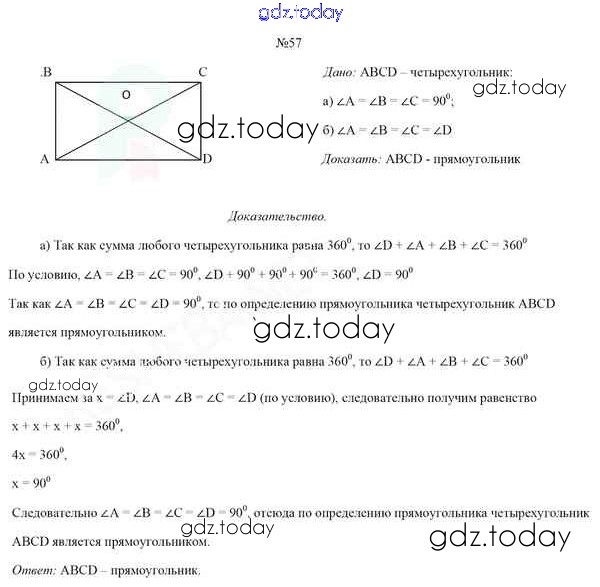 На страницах сайта gdz.today вы найдете учебный и вспомогательный материал, направленный на улучшения знаний школьной программы. ГДЗ - онлайн мир знаний Задачи (решение) 57 Учебнику по Геометрии для 8 класса Казаков Народная асвета 2018