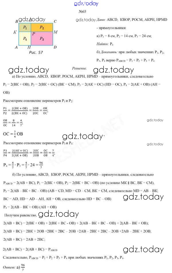 На страницах сайта gdz.today вы найдете учебный и вспомогательный материал, направленный на улучшения знаний школьной программы. ГДЗ - онлайн мир знаний Задачи (решение) 65 Учебнику по Геометрии для 8 класса Казаков Народная асвета 2018