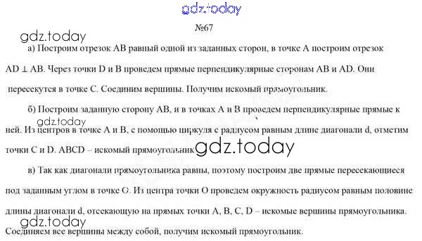 На страницах сайта gdz.today вы найдете учебный и вспомогательный материал, направленный на улучшения знаний школьной программы. ГДЗ - онлайн мир знаний Задачи (решение) 67 Учебнику по Геометрии для 8 класса Казаков Народная асвета 2018