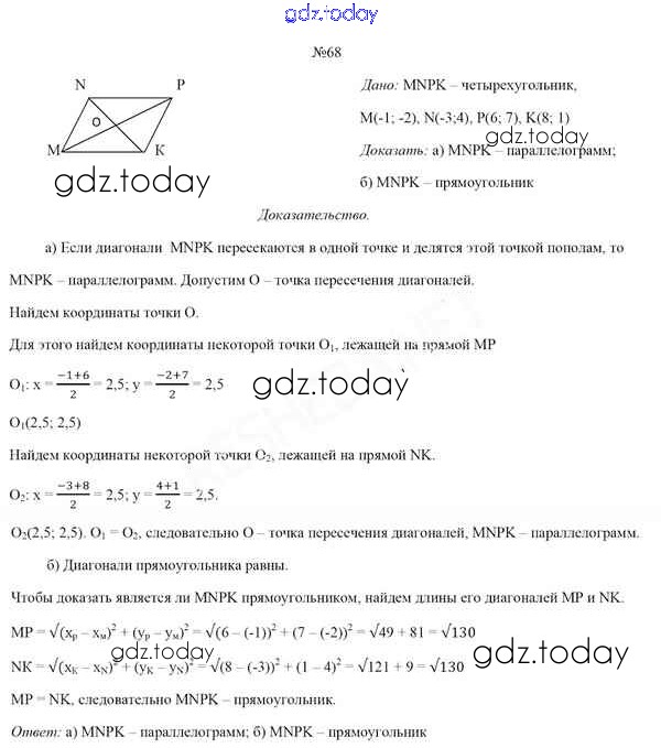 На страницах сайта gdz.today вы найдете учебный и вспомогательный материал, направленный на улучшения знаний школьной программы. ГДЗ - онлайн мир знаний Задачи (решение) 68 Учебнику по Геометрии для 8 класса Казаков Народная асвета 2018
