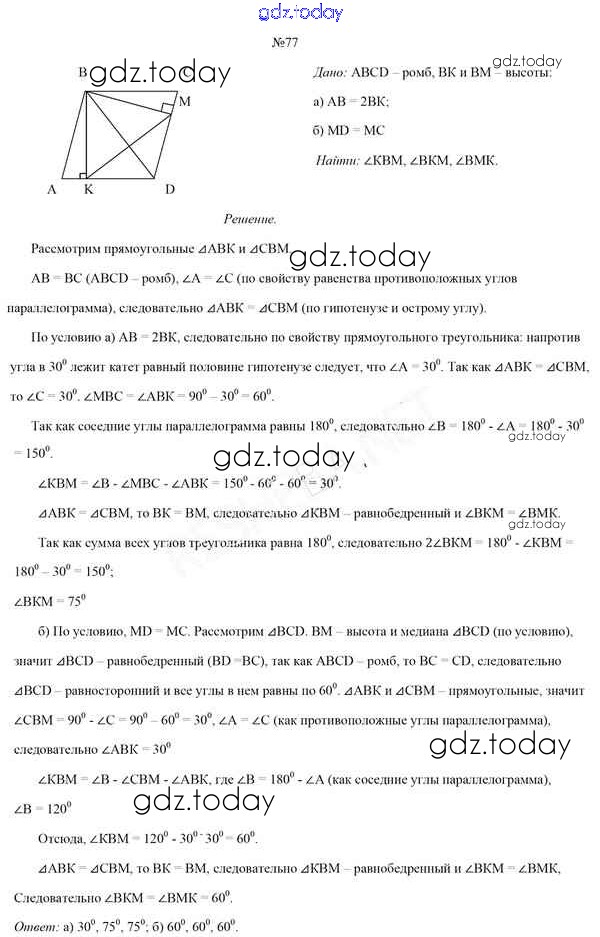 Ответы к Задачи (решение) 77 Учебнику по Геометрии для 8 класса Казаков Народная асвета 2018