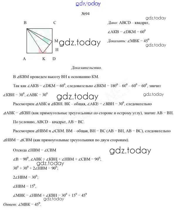 На страницах сайта gdz.today вы найдете учебный и вспомогательный материал, направленный на улучшения знаний школьной программы. ГДЗ - онлайн мир знаний Задачи (решение) 94 Учебнику по Геометрии для 8 класса Казаков Народная асвета 2018