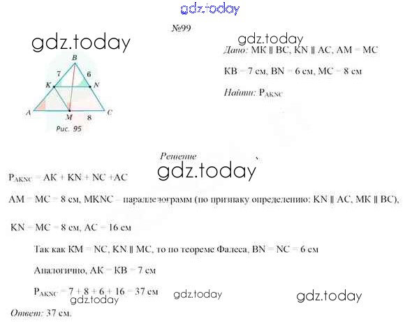 Ответы к Задачи (решение) 99 Учебнику по Геометрии для 8 класса Казаков Народная асвета 2018
