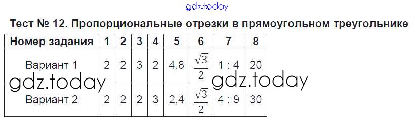 На страницах сайта gdz.today вы найдете учебный и вспомогательный материал, направленный на улучшения знаний школьной программы. ГДЗ - онлайн мир знаний Решение к тестам Тест №12. Пропорциональные отрезки в прямоугольном треугольнике Контрольно-измерительным материалам (КИМ) по Геометрии для 8 класса Рязановский, Мухин Экзамен 2014