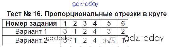 Ответы к Решение к тестам Тест №16. Пропорциональные отрезки в круге Контрольно-измерительным материалам (КИМ) по Геометрии для 8 класса Рязановский, Мухин Экзамен 2014