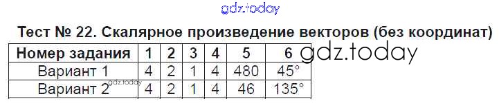 Ответы к Решение к тестам Тест №22. Скалярное произведение векторов Контрольно-измерительным материалам (КИМ) по Геометрии для 8 класса Рязановский, Мухин Экзамен 2014
