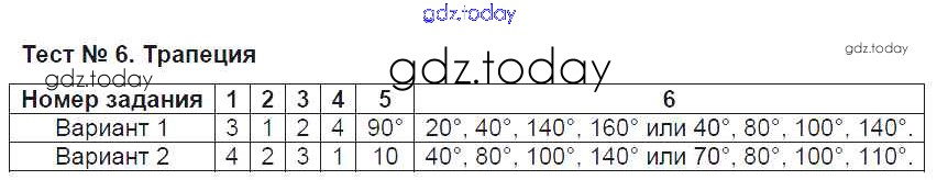 Ответы к Решение к тестам Тест №6. Трапеция Контрольно-измерительным материалам (КИМ) по Геометрии для 8 класса Рязановский, Мухин Экзамен 2014