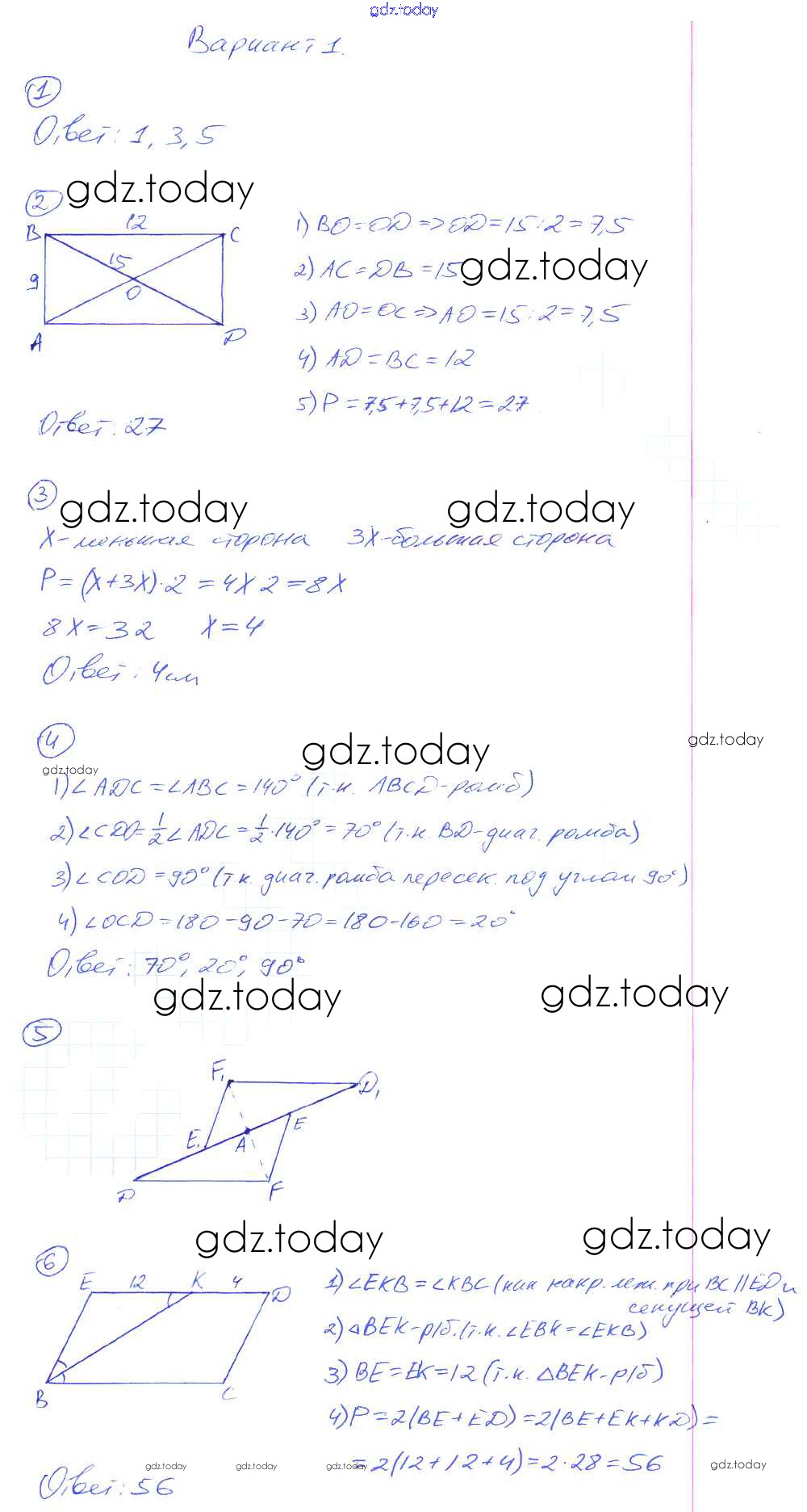 На страницах сайта gdz.today вы найдете учебный и вспомогательный материал, направленный на улучшения знаний школьной программы. ГДЗ - онлайн мир знаний Решение к контрольной работе №1. Четырехугольники Вариант №1 Контрольным работам по Геометрии для 8 класса Мельникова Экзамен УМК 2013
