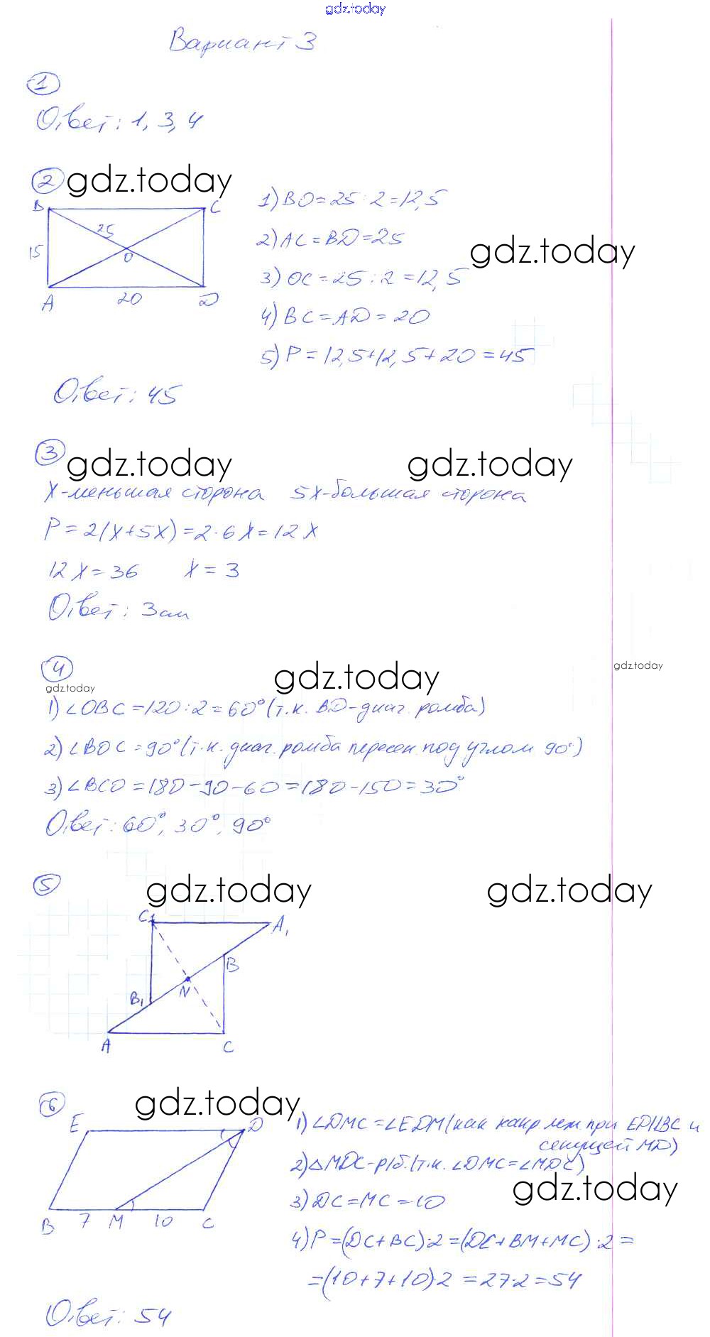 На страницах сайта gdz.today вы найдете учебный и вспомогательный материал, направленный на улучшения знаний школьной программы. ГДЗ - онлайн мир знаний Решение к контрольной работе №1. Четырехугольники Вариант №3 Контрольным работам по Геометрии для 8 класса Мельникова Экзамен УМК 2013