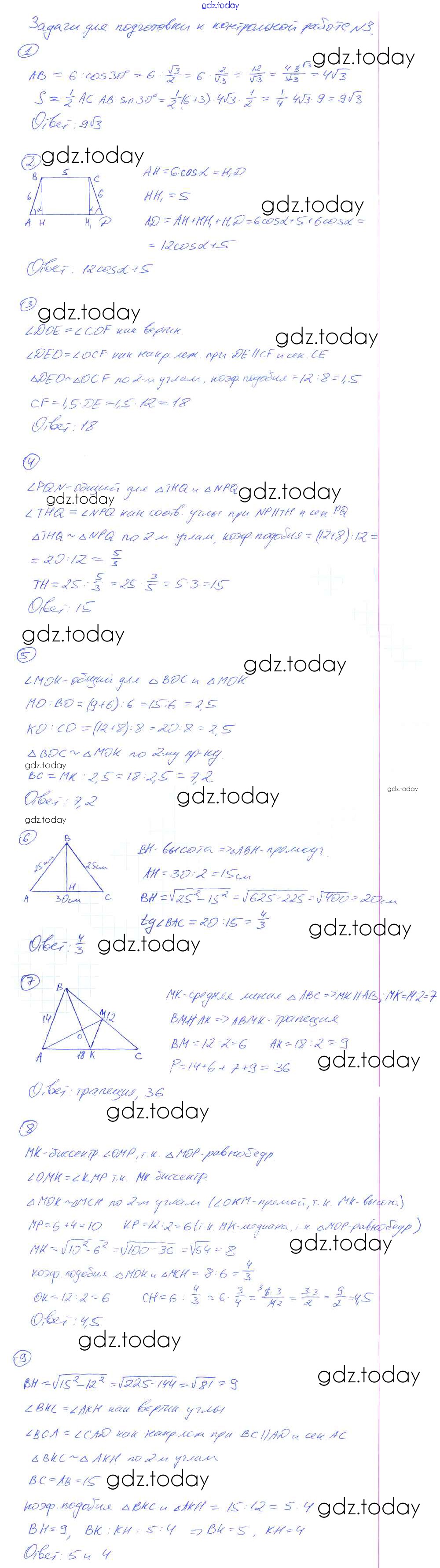 На страницах сайта gdz.today вы найдете учебный и вспомогательный материал, направленный на улучшения знаний школьной программы. ГДЗ - онлайн мир знаний Решение к контрольной работе №3. Подобные треугольники Задачи для подготовки к контрольной работе Контрольным работам по Геометрии для 8 класса Мельникова Экзамен УМК 2013