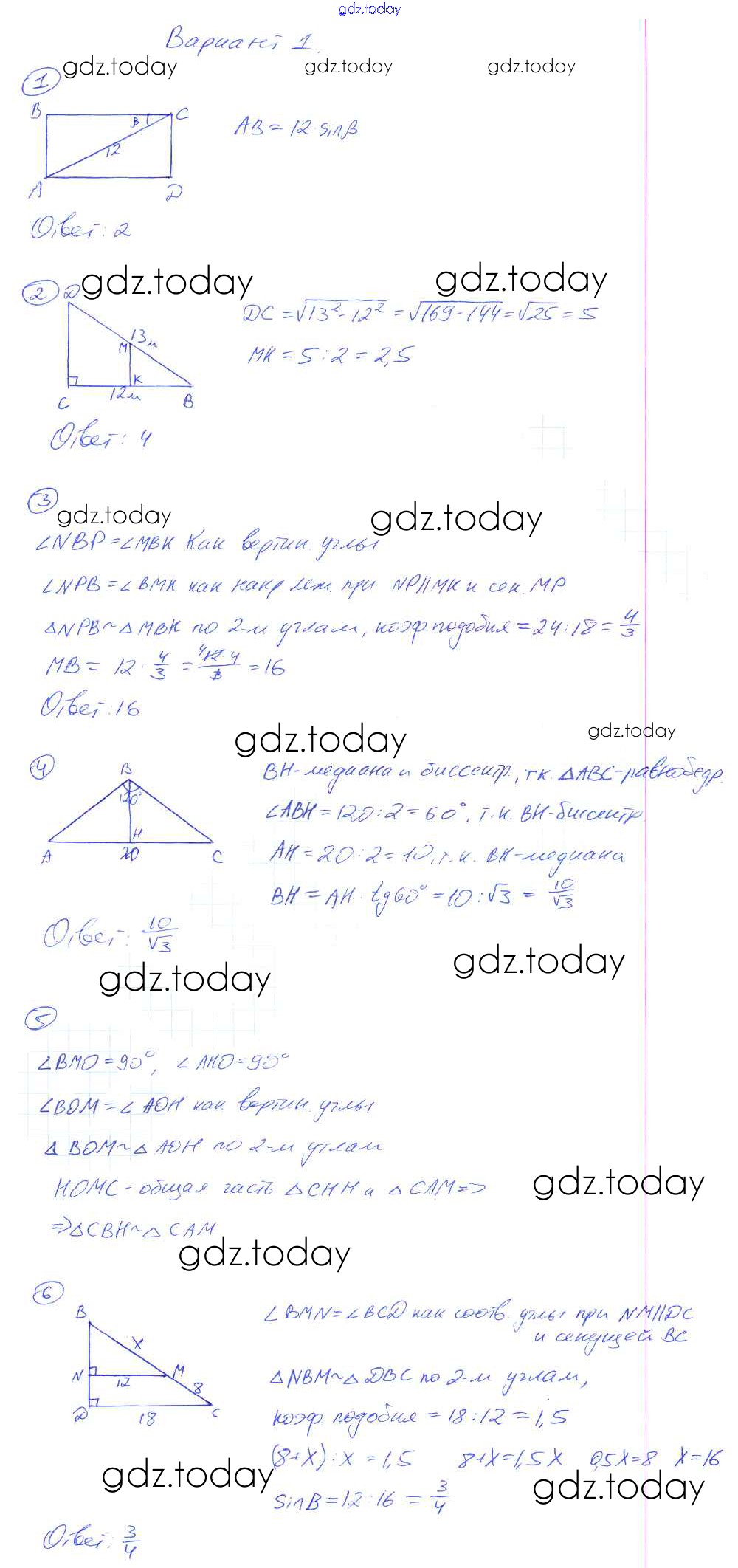 На страницах сайта gdz.today вы найдете учебный и вспомогательный материал, направленный на улучшения знаний школьной программы. ГДЗ - онлайн мир знаний Решение к контрольной работе №3. Подобные треугольники Вариант №1 Контрольным работам по Геометрии для 8 класса Мельникова Экзамен УМК 2013