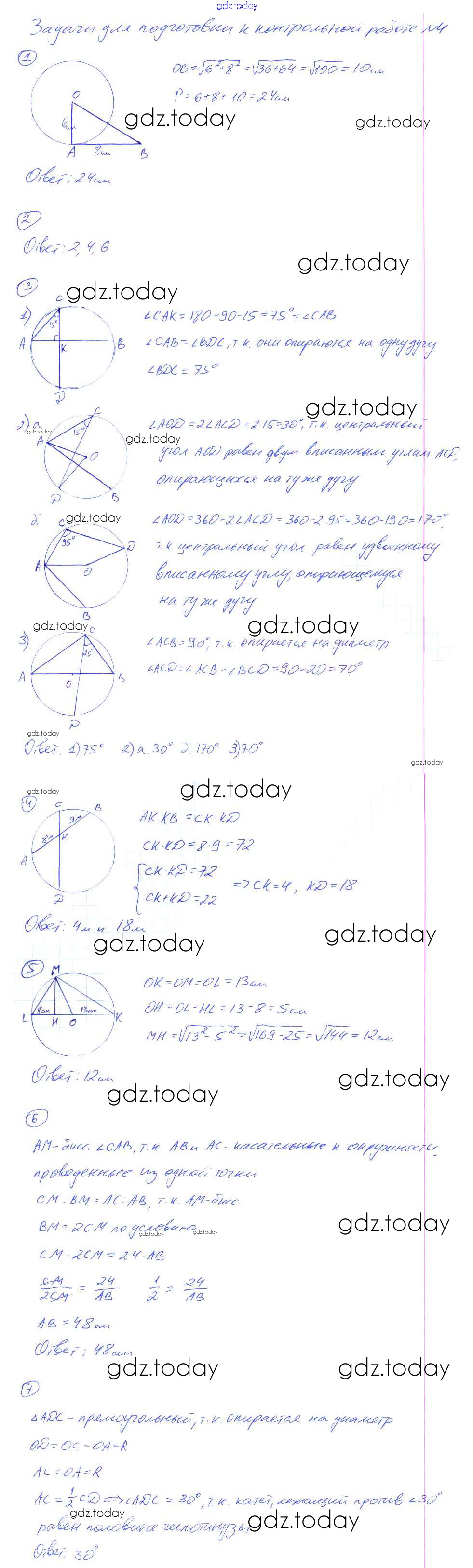 На страницах сайта gdz.today вы найдете учебный и вспомогательный материал, направленный на улучшения знаний школьной программы. ГДЗ - онлайн мир знаний Решение к контрольной работе №4. Окружность Задачи для подготовки к контрольной работе Контрольным работам по Геометрии для 8 класса Мельникова Экзамен УМК 2013