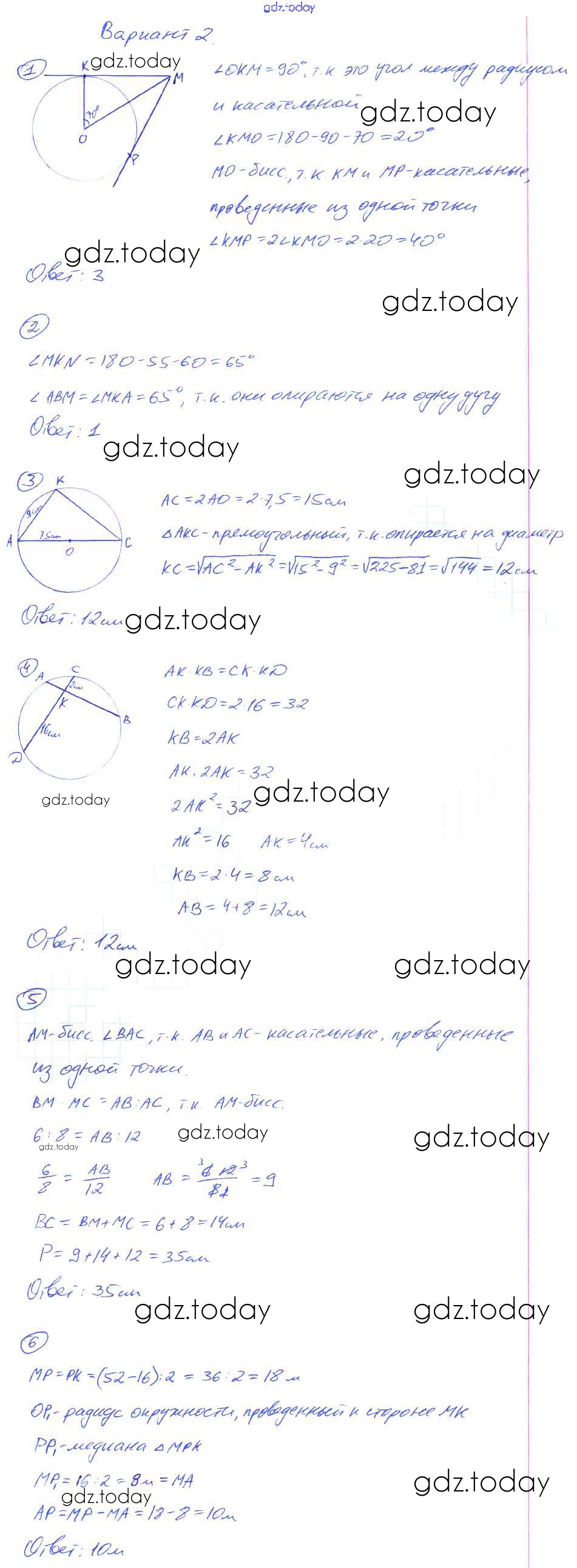 На страницах сайта gdz.today вы найдете учебный и вспомогательный материал, направленный на улучшения знаний школьной программы. ГДЗ - онлайн мир знаний Решение к контрольной работе №4. Окружность Вариант №2 Контрольным работам по Геометрии для 8 класса Мельникова Экзамен УМК 2013