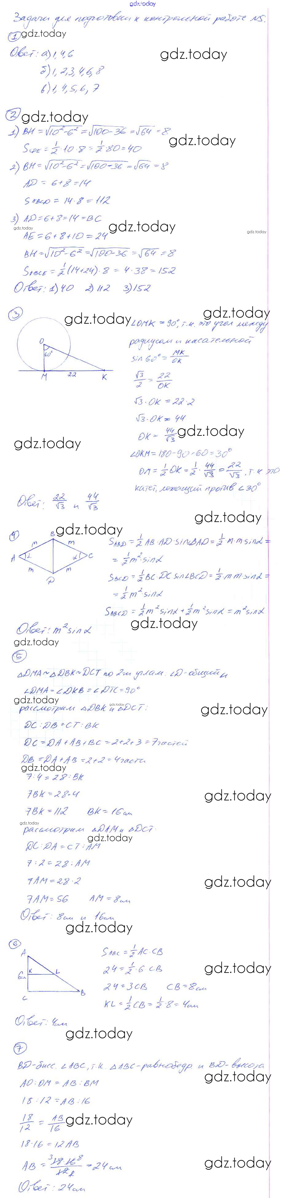 На страницах сайта gdz.today вы найдете учебный и вспомогательный материал, направленный на улучшения знаний школьной программы. ГДЗ - онлайн мир знаний Решение к контрольной работе №5. Итоговая Задачи для подготовки к контрольной работе Контрольным работам по Геометрии для 8 класса Мельникова Экзамен УМК 2013