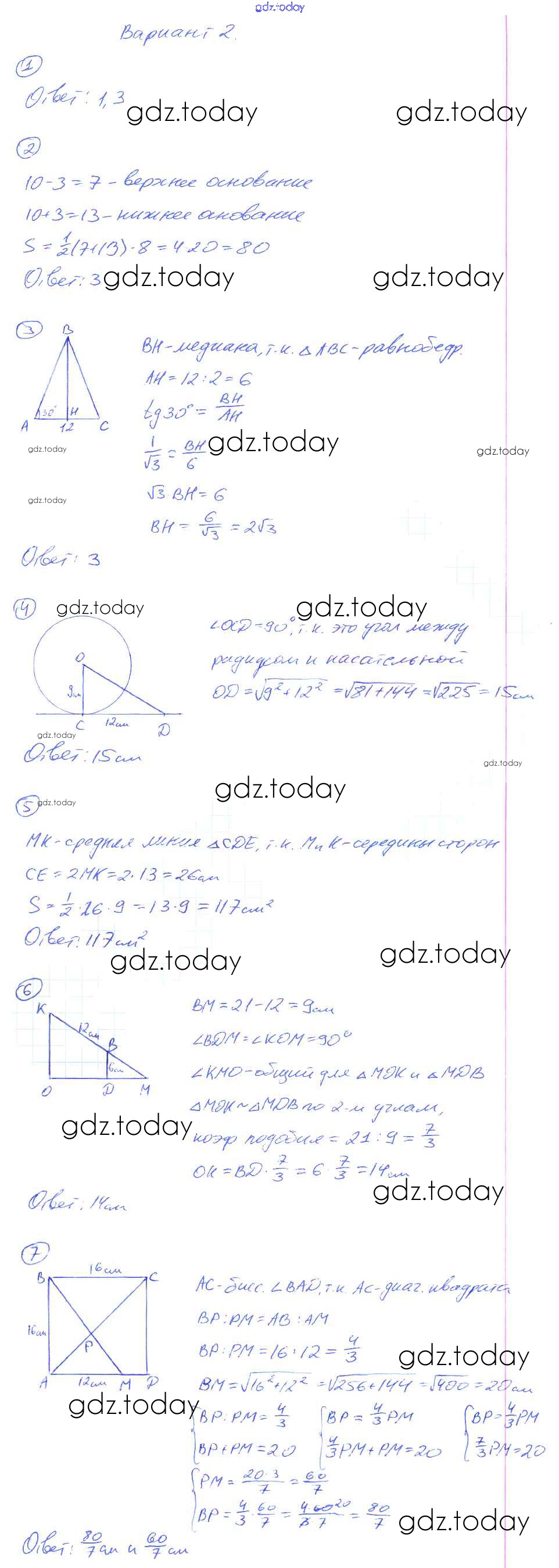 На страницах сайта gdz.today вы найдете учебный и вспомогательный материал, направленный на улучшения знаний школьной программы. ГДЗ - онлайн мир знаний Решение к контрольной работе №5. Итоговая Вариант №2 Контрольным работам по Геометрии для 8 класса Мельникова Экзамен УМК 2013