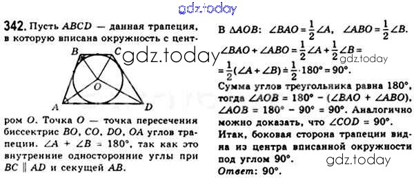 Ответы к § 10. Описанная и вписанная окружности четырехугольника Решение. Глава 1. Четырехугольники 342 Учебнику по Геометрии для 8 класса Мерзляк, Полонский Вентана-граф Алгоритм успеха 2015
