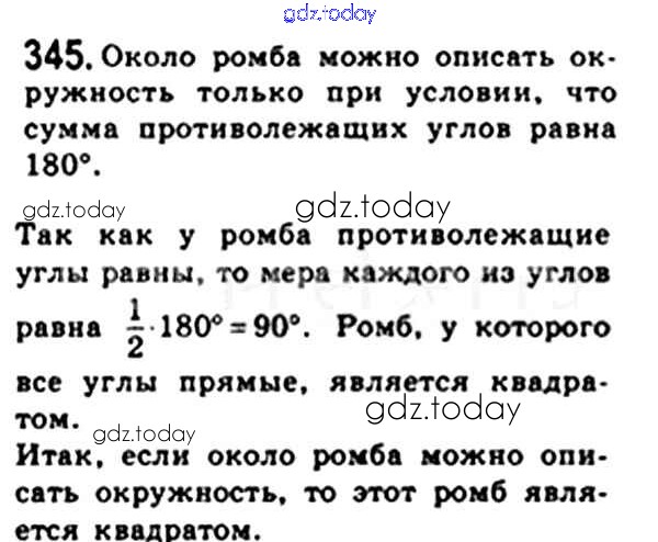 Ответы к § 10. Описанная и вписанная окружности четырехугольника Решение. Глава 1. Четырехугольники 345 Учебнику по Геометрии для 8 класса Мерзляк, Полонский Вентана-граф Алгоритм успеха 2015