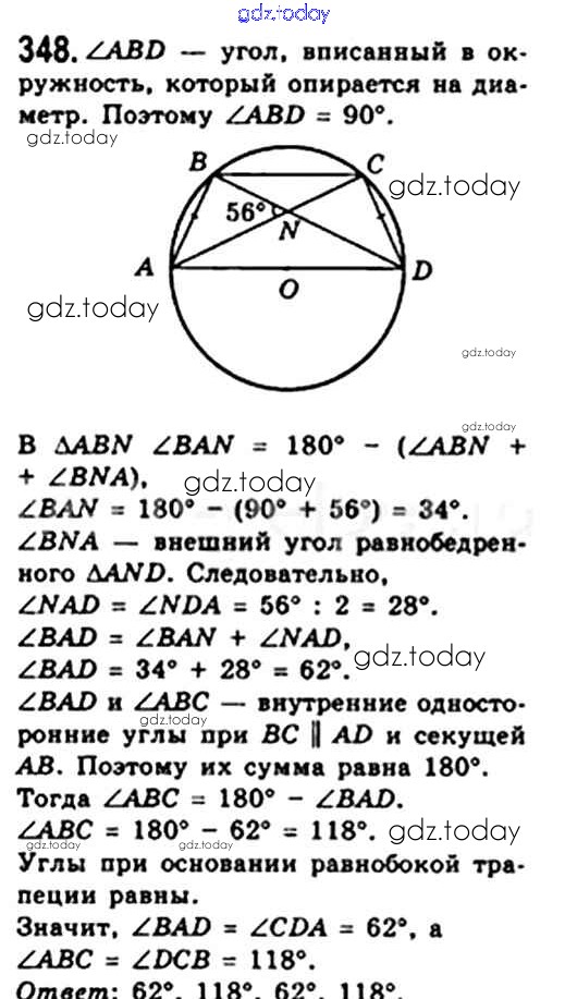 Ответы к § 10. Описанная и вписанная окружности четырехугольника Решение. Глава 1. Четырехугольники 348 Учебнику по Геометрии для 8 класса Мерзляк, Полонский Вентана-граф Алгоритм успеха 2015