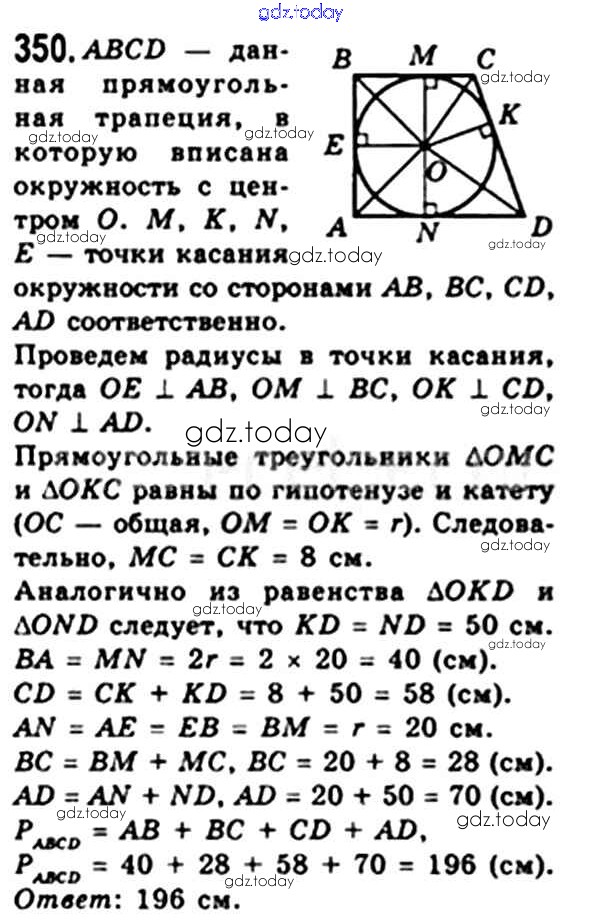 Ответы к § 10. Описанная и вписанная окружности четырехугольника Решение. Глава 1. Четырехугольники 350 Учебнику по Геометрии для 8 класса Мерзляк, Полонский Вентана-граф Алгоритм успеха 2015