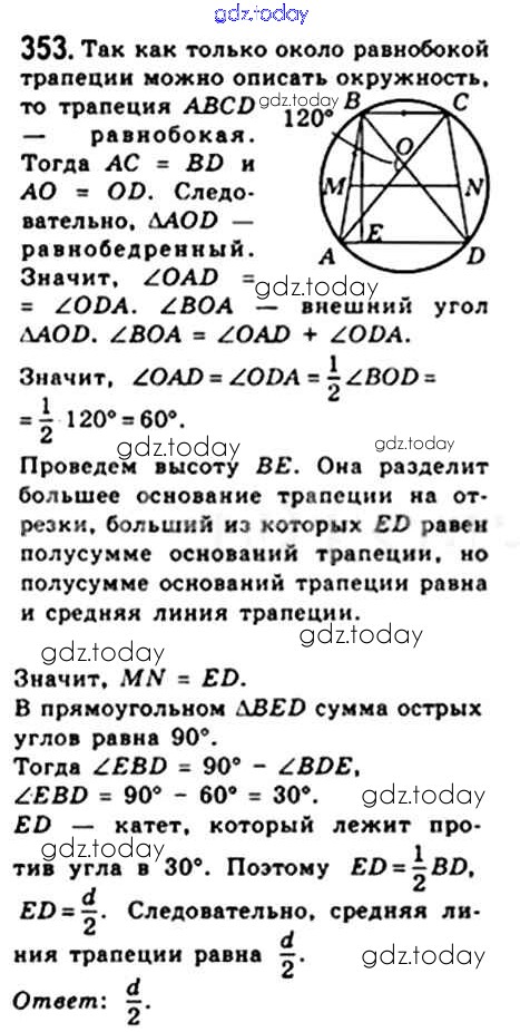 Ответы к § 10. Описанная и вписанная окружности четырехугольника Решение. Глава 1. Четырехугольники 353 Учебнику по Геометрии для 8 класса Мерзляк, Полонский Вентана-граф Алгоритм успеха 2015