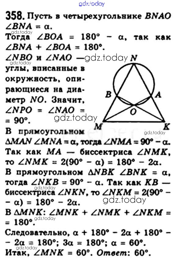 Ответы к § 10. Описанная и вписанная окружности четырехугольника Решение. Глава 1. Четырехугольники 358 Учебнику по Геометрии для 8 класса Мерзляк, Полонский Вентана-граф Алгоритм успеха 2015