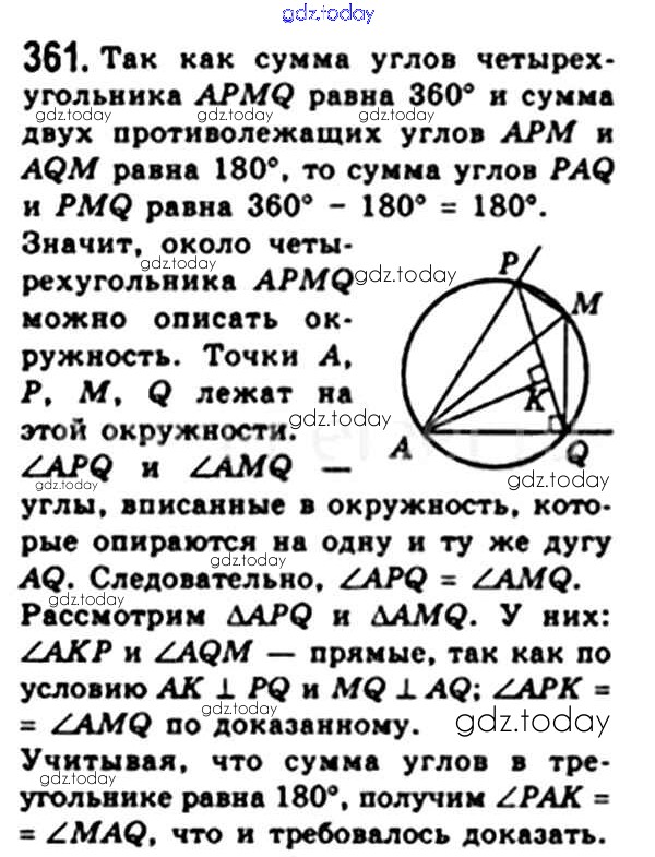 На страницах сайта gdz.today вы найдете учебный и вспомогательный материал, направленный на улучшения знаний школьной программы. ГДЗ - онлайн мир знаний § 10. Описанная и вписанная окружности четырехугольника Решение. Глава 1. Четырехугольники 361 Учебнику по Геометрии для 8 класса Мерзляк, Полонский Вентана-граф Алгоритм успеха 2015