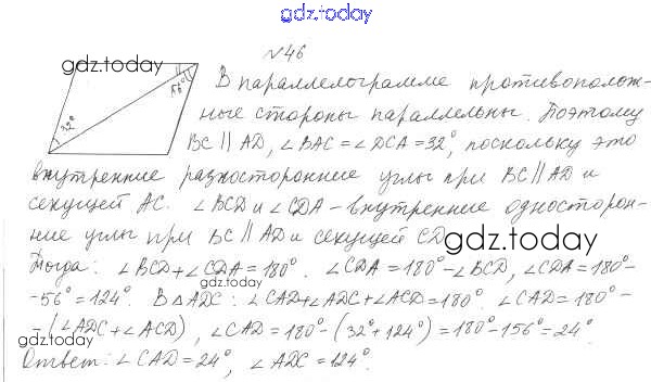 Ответы к § 2. Параллелограмм. Свойства параллелограмма Решение. Глава 1. Четырехугольники 46 Учебнику по Геометрии для 8 класса Мерзляк, Полонский Вентана-граф Алгоритм успеха 2015