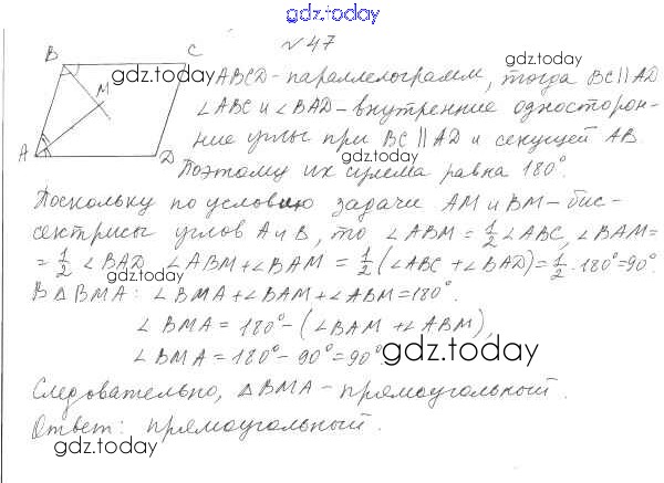 Ответы к § 2. Параллелограмм. Свойства параллелограмма Решение. Глава 1. Четырехугольники 47 Учебнику по Геометрии для 8 класса Мерзляк, Полонский Вентана-граф Алгоритм успеха 2015