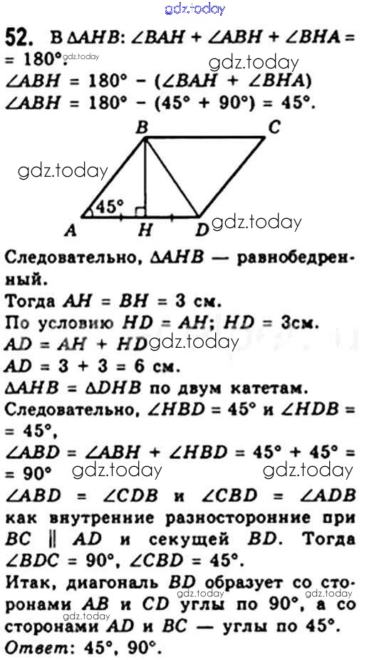 Ответы к § 2. Параллелограмм. Свойства параллелограмма Решение. Глава 1. Четырехугольники 52 Учебнику по Геометрии для 8 класса Мерзляк, Полонский Вентана-граф Алгоритм успеха 2015
