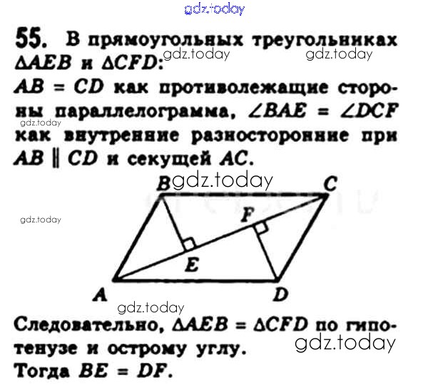На страницах сайта gdz.today вы найдете учебный и вспомогательный материал, направленный на улучшения знаний школьной программы. ГДЗ - онлайн мир знаний § 2. Параллелограмм. Свойства параллелограмма Решение. Глава 1. Четырехугольники 55 Учебнику по Геометрии для 8 класса Мерзляк, Полонский Вентана-граф Алгоритм успеха 2015