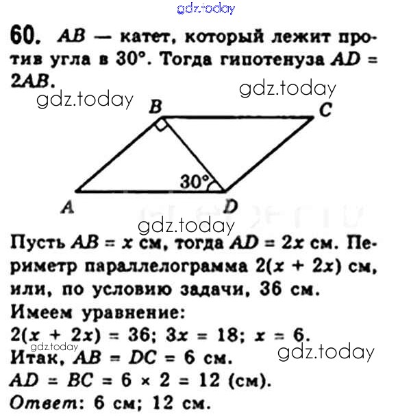 Ответы к § 2. Параллелограмм. Свойства параллелограмма Решение. Глава 1. Четырехугольники 60 Учебнику по Геометрии для 8 класса Мерзляк, Полонский Вентана-граф Алгоритм успеха 2015