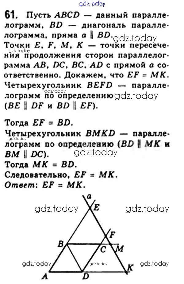 На страницах сайта gdz.today вы найдете учебный и вспомогательный материал, направленный на улучшения знаний школьной программы. ГДЗ - онлайн мир знаний § 2. Параллелограмм. Свойства параллелограмма Решение. Глава 1. Четырехугольники 61 Учебнику по Геометрии для 8 класса Мерзляк, Полонский Вентана-граф Алгоритм успеха 2015
