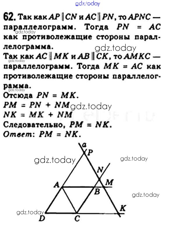 На страницах сайта gdz.today вы найдете учебный и вспомогательный материал, направленный на улучшения знаний школьной программы. ГДЗ - онлайн мир знаний § 2. Параллелограмм. Свойства параллелограмма Решение. Глава 1. Четырехугольники 62 Учебнику по Геометрии для 8 класса Мерзляк, Полонский Вентана-граф Алгоритм успеха 2015