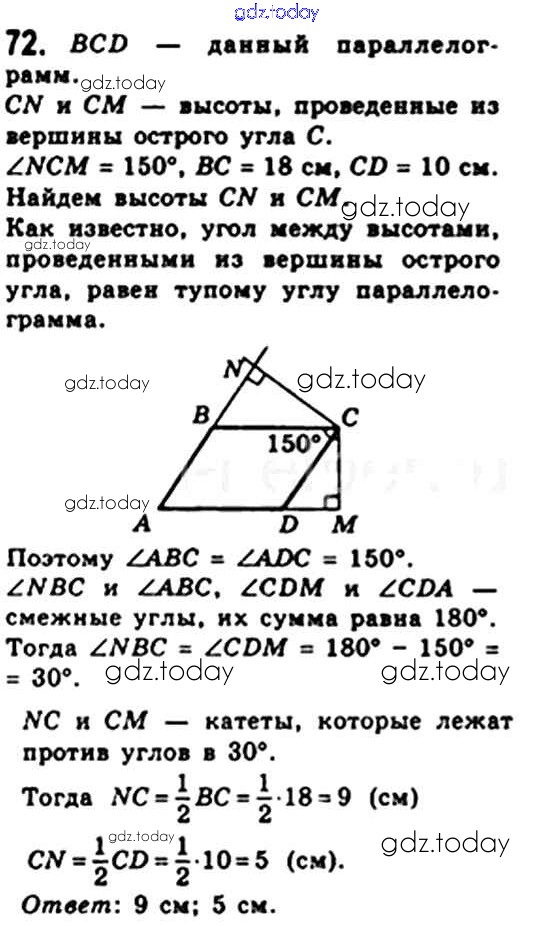 Ответы к § 2. Параллелограмм. Свойства параллелограмма Решение. Глава 1. Четырехугольники 72 Учебнику по Геометрии для 8 класса Мерзляк, Полонский Вентана-граф Алгоритм успеха 2015
