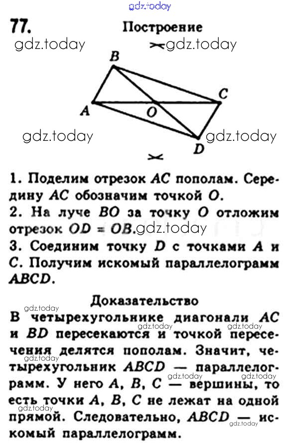 На страницах сайта gdz.today вы найдете учебный и вспомогательный материал, направленный на улучшения знаний школьной программы. ГДЗ - онлайн мир знаний § 2. Параллелограмм. Свойства параллелограмма Решение. Глава 1. Четырехугольники 77 Учебнику по Геометрии для 8 класса Мерзляк, Полонский Вентана-граф Алгоритм успеха 2015