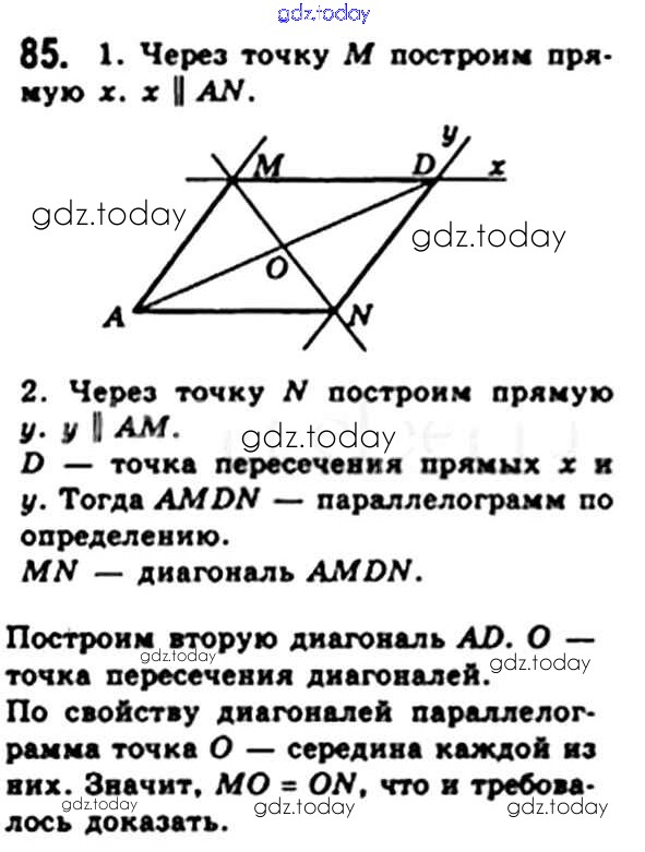 На страницах сайта gdz.today вы найдете учебный и вспомогательный материал, направленный на улучшения знаний школьной программы. ГДЗ - онлайн мир знаний § 2. Параллелограмм. Свойства параллелограмма Решение. Глава 1. Четырехугольники 85 Учебнику по Геометрии для 8 класса Мерзляк, Полонский Вентана-граф Алгоритм успеха 2015