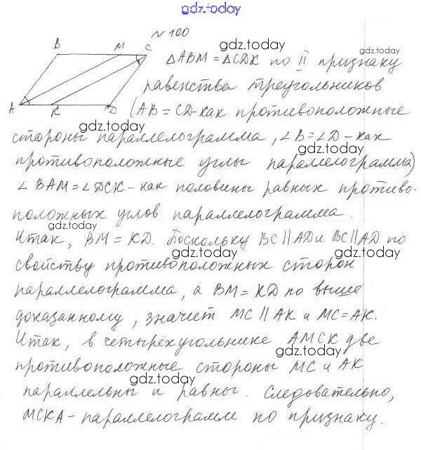 Ответы к § 3. Признаки параллелограмма Решение. Глава 1. Четырехугольники 100 Учебнику по Геометрии для 8 класса Мерзляк, Полонский Вентана-граф Алгоритм успеха 2015