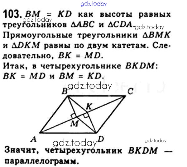 На страницах сайта gdz.today вы найдете учебный и вспомогательный материал, направленный на улучшения знаний школьной программы. ГДЗ - онлайн мир знаний § 3. Признаки параллелограмма Решение. Глава 1. Четырехугольники 103 Учебнику по Геометрии для 8 класса Мерзляк, Полонский Вентана-граф Алгоритм успеха 2015