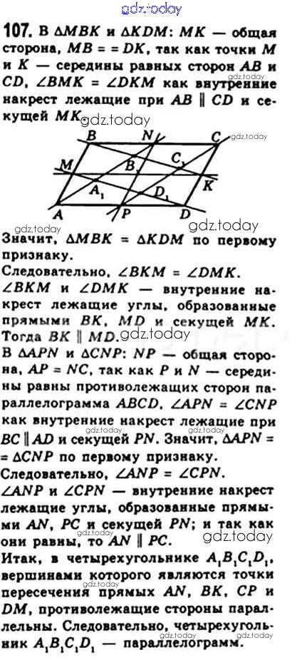 На страницах сайта gdz.today вы найдете учебный и вспомогательный материал, направленный на улучшения знаний школьной программы. ГДЗ - онлайн мир знаний § 3. Признаки параллелограмма Решение. Глава 1. Четырехугольники 107 Учебнику по Геометрии для 8 класса Мерзляк, Полонский Вентана-граф Алгоритм успеха 2015