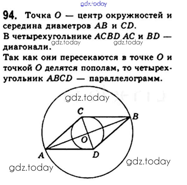 Ответы к § 3. Признаки параллелограмма Решение. Глава 1. Четырехугольники 94 Учебнику по Геометрии для 8 класса Мерзляк, Полонский Вентана-граф Алгоритм успеха 2015