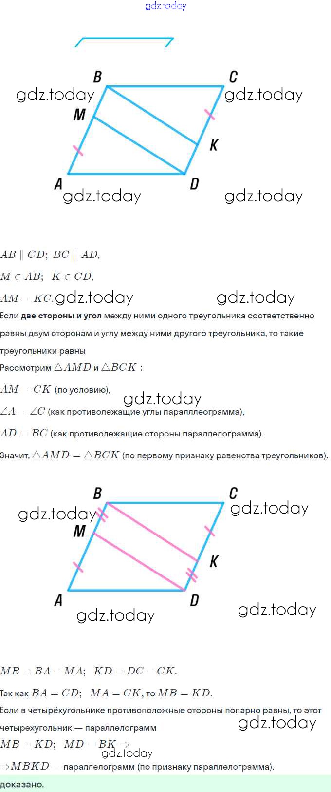 Ответы к § 3. Признаки параллелограмма Решение. Глава 1. Четырехугольники 96 Учебнику по Геометрии для 8 класса Мерзляк, Полонский Вентана-граф Алгоритм успеха 2015