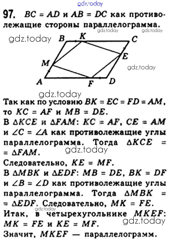 На страницах сайта gdz.today вы найдете учебный и вспомогательный материал, направленный на улучшения знаний школьной программы. ГДЗ - онлайн мир знаний § 3. Признаки параллелограмма Решение. Глава 1. Четырехугольники 97 Учебнику по Геометрии для 8 класса Мерзляк, Полонский Вентана-граф Алгоритм успеха 2015