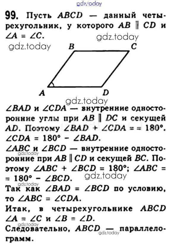 Ответы к § 3. Признаки параллелограмма Решение. Глава 1. Четырехугольники 99 Учебнику по Геометрии для 8 класса Мерзляк, Полонский Вентана-граф Алгоритм успеха 2015