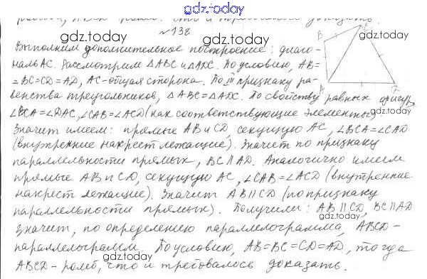 Ответы к § 5. Ромб Решение. Глава 1. Четырехугольники 138 Учебнику по Геометрии для 8 класса Мерзляк, Полонский Вентана-граф Алгоритм успеха 2015