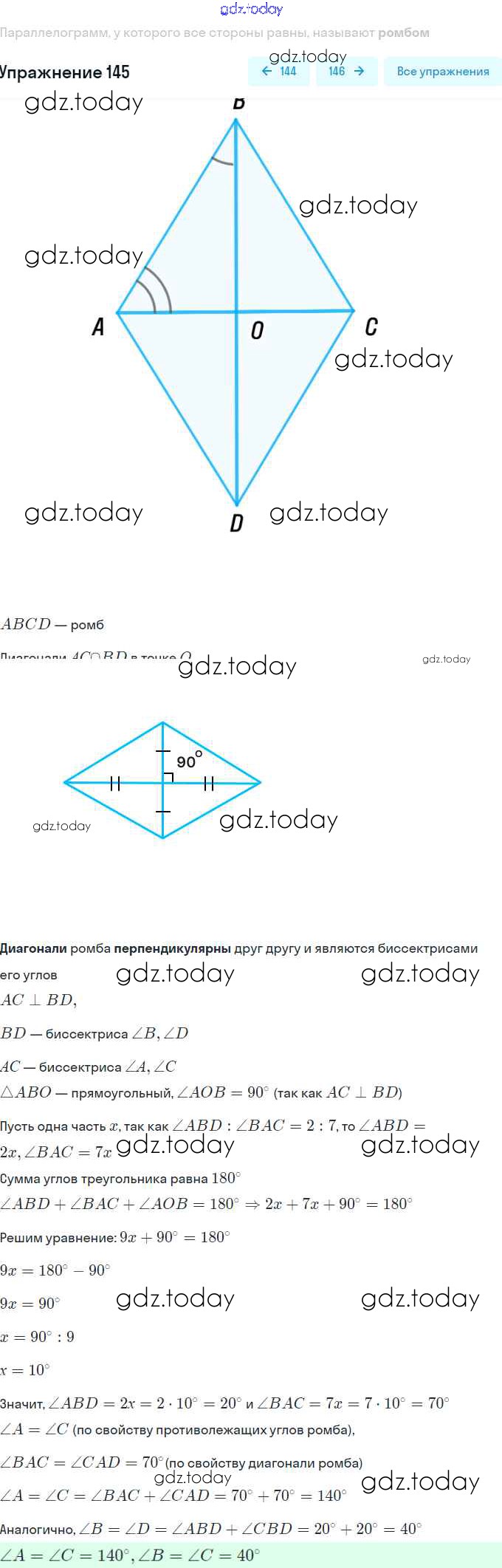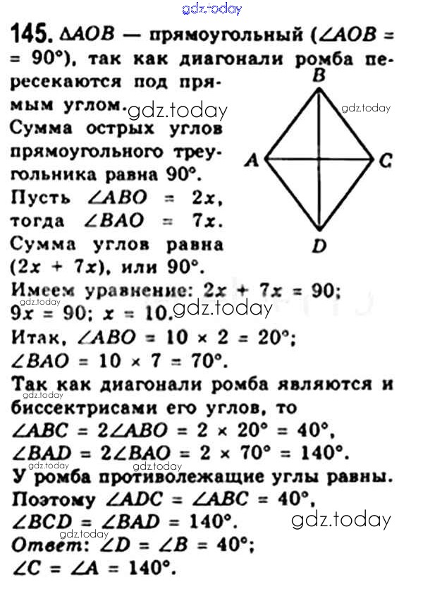 На страницах сайта gdz.today вы найдете учебный и вспомогательный материал, направленный на улучшения знаний школьной программы. ГДЗ - онлайн мир знаний § 5. Ромб Решение. Глава 1. Четырехугольники 145 Учебнику по Геометрии для 8 класса Мерзляк, Полонский Вентана-граф Алгоритм успеха 2015